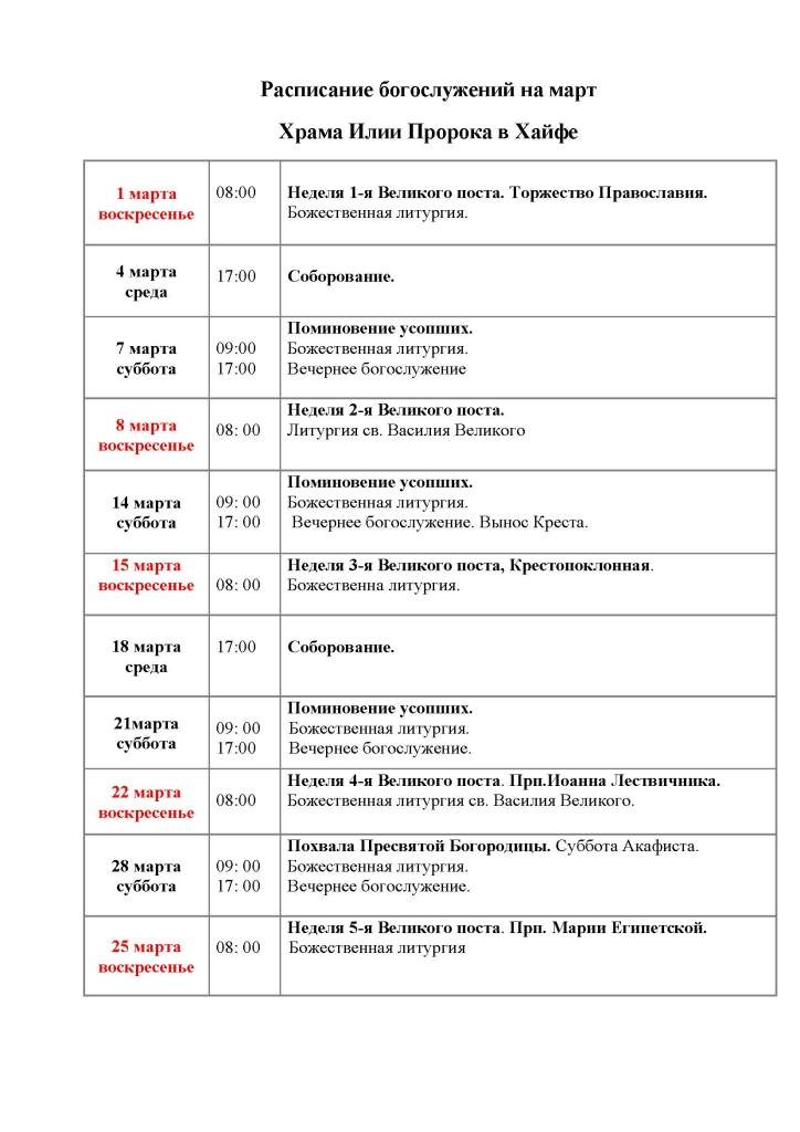 – в утреннее время совершается перед Божественной литургией с 7:00.