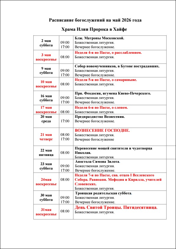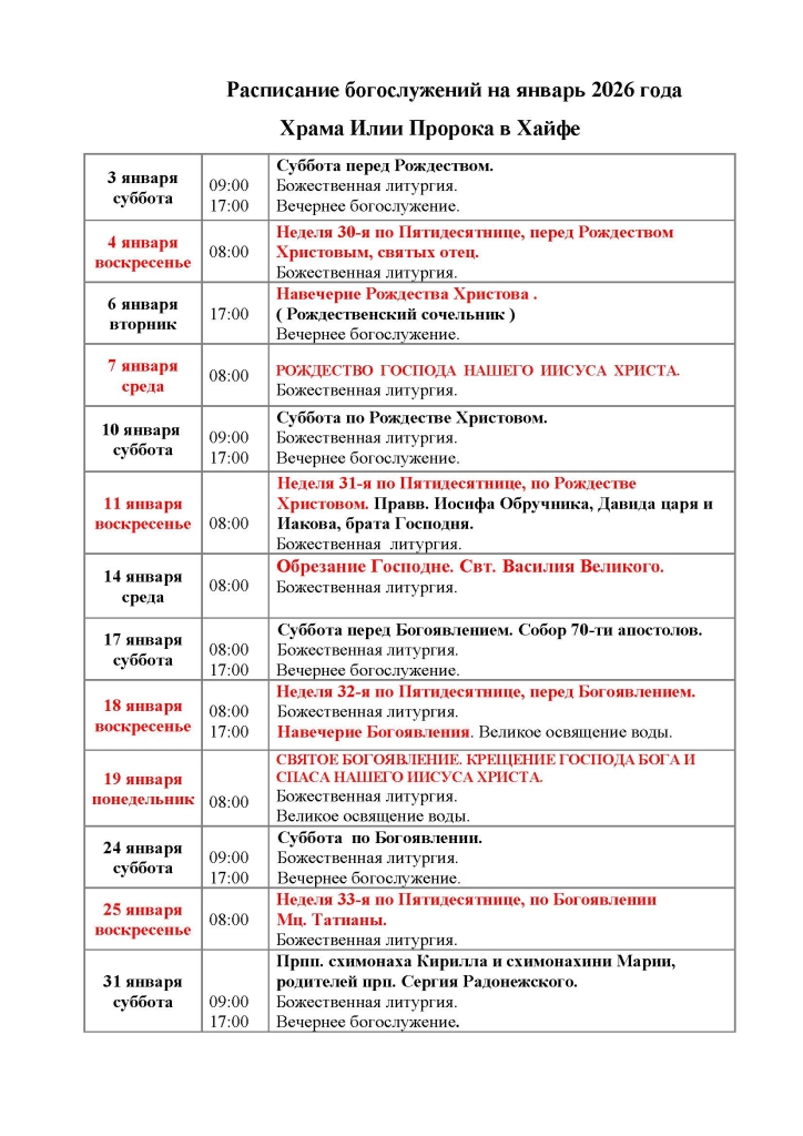 – в утреннее время совершается перед Божественной литургией с 7:00.